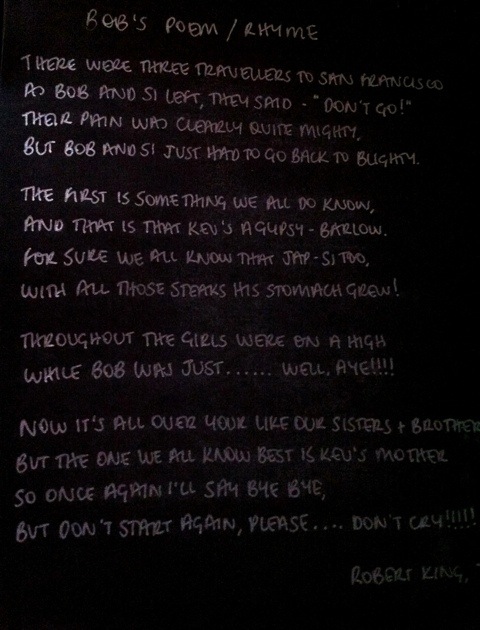 Audrey, Terry and Hannah – MY TROUSERS! I have spoken to you and so you know what to do with them. Thank you so much for having us all once again, we had such a cool time.