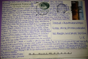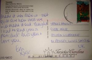 I got totally burnt yesterday as I did not even think to take sun tan lotion as it was not at all hot when we came out. SILLY GIRL – yes I know Mum! SO I am in absolute agony today – NICE! We are trying to go across to Tijuana today, a little Mexican border town. We seem to be spending quite a while on the internet though and so I am not sure if we are going to make it as we are driving to LA this afternoon and we want to get there in the light. We also want to swim when we get there as the Econolodge has a pool.