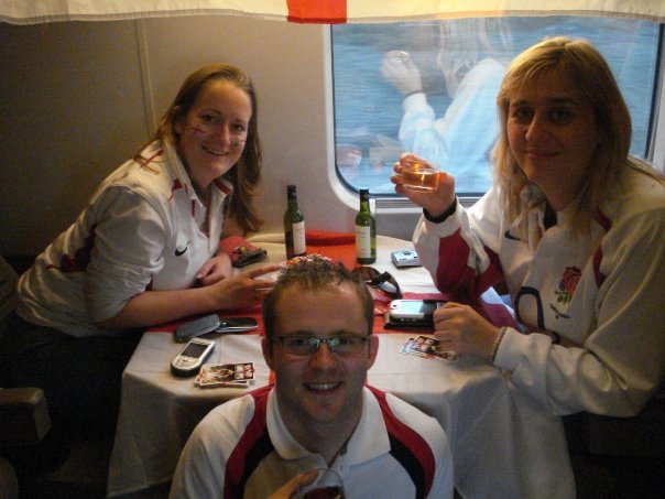 We spent the afternoon sitting and eating and consuming Kir Royals before alighting the Eurostar back home to some sleep. We moved to our special compartment aptly known as the sin bin with complementary wine drunk out of Eurostar glasses while we played England Rugby Heroes Top Trumps and ate Malteasers surrounded by England flags hung up and used as a table-cloth, much to the amusement of the staff.