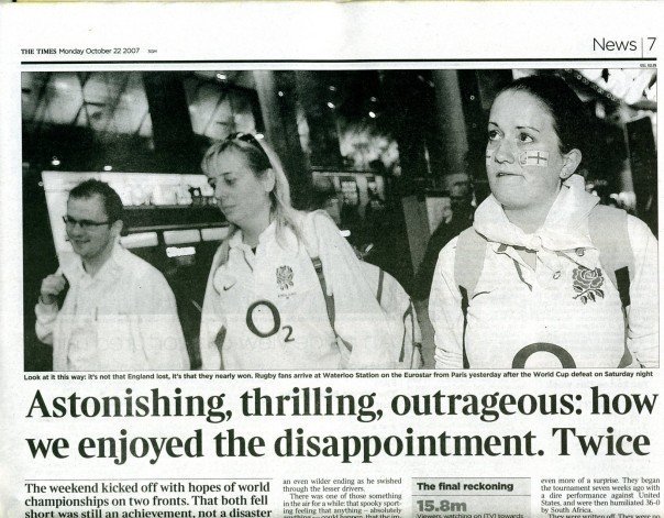 Coming back to our hotel after our venture into town on another seriously over packed train, I could still feel the smile on my face, still not quite believing that I was actually here. We had lost but put up a bloody good fight, a fantastic turnaround from 36 days previously. The boys did us proud to say the least. ‘Little Taitey’ this time last time round was watching it from his 6th form Common Room and there he was putting on a stunning performance and taking it all in his stride – you’ve just played a World Cup Final! I would have been a nervous wreck! We had a drink in a bar near the Gara de Nord and had chips and sang songs with the clientele in there at the top of our voices and then made a move for bed and some beauty sleep. We noticed on the way back how few SA’s there seemed to be around the place celebrating.