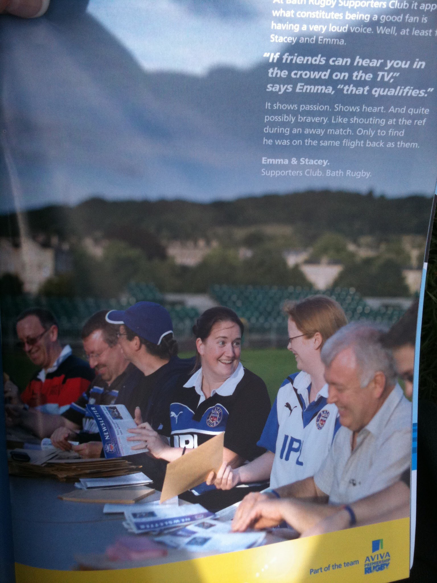 It was definitely the right thing to have done. It was so nice to see so many familiar faces all wishing us well (even though it was only me there!!) and to be honest only make my tummie turn more, particularly when people asked how I was doing as I still had no idea!! I had a text off of Peter alerting me to my ugly mug being in the programme so I got 2 checking that Jim and Stace would want one too. It’s quite funny and really very fitting that I was the main focus for the advert this week!! I greeted the Brunton clan and Gouldy in the usual place behind the east stand for a fag and a catch up before we all headed to our seats. It was lovely to see them all – all 3 brothers, Kelvin, Hannah + bump and my rugby niece Amelia. It just felt so right to be with them all.