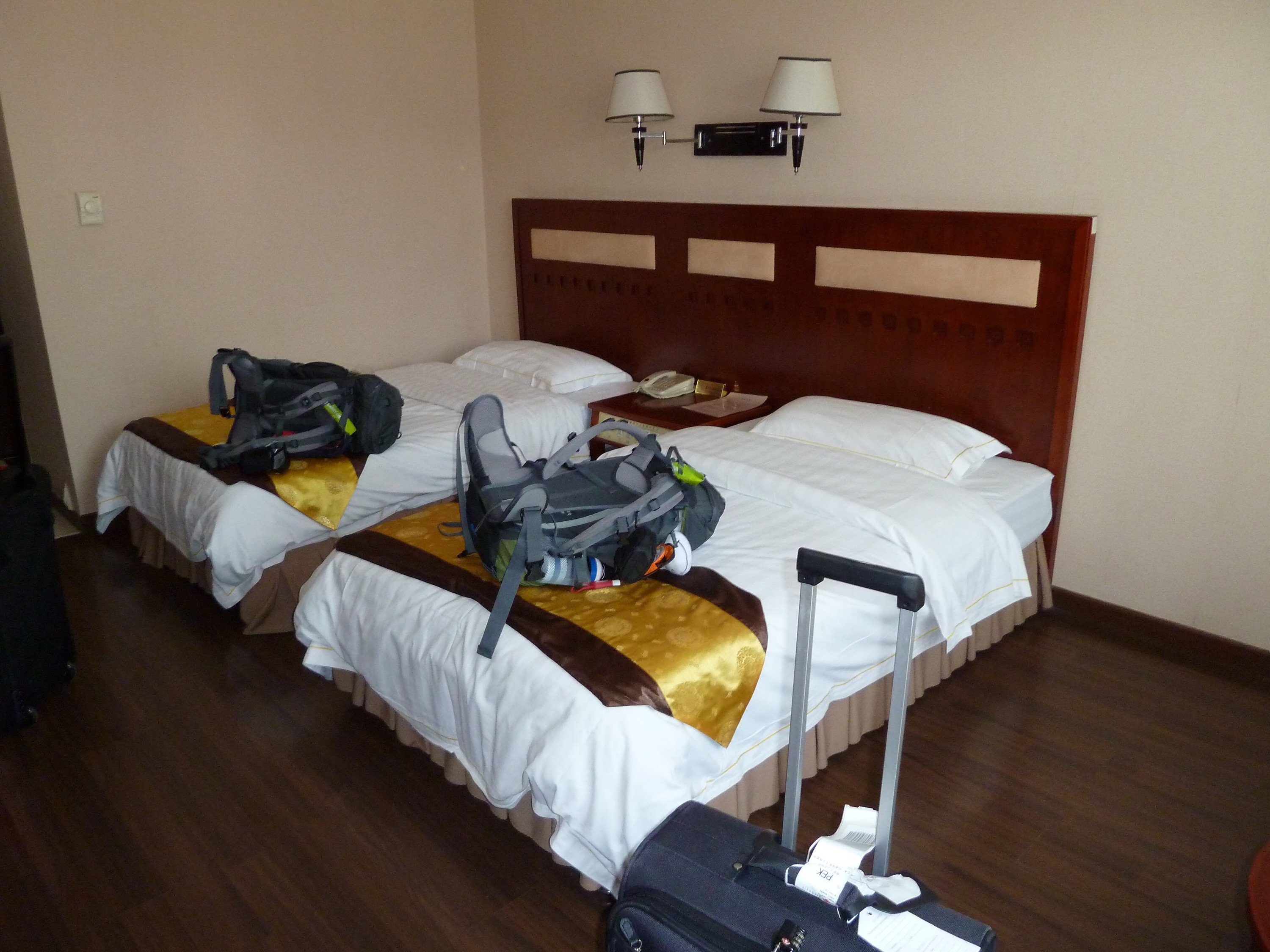 After meeting up with our guides Peter and Michael who would be at the front and Sasha at the back when we start trekking we went out side to the coach where the smokers amongst us could partake in a quick fag. Why does it always feel so good having one after a long flight?!! We sampled some of the Beijing traffic as soon as we left the airport and OMG I could so see how there was a 65 mile tailback where people were reported to have been stuck for 9 days. I fell asleep pretty soon after getting on the bus and woke up in yet another traffic jam nearer to where we were staying I was assured though that we weren’t in one the whole time!