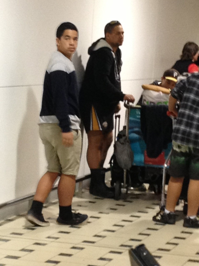 I spent my evening at the airport last night, as you’d expect to be honest with my role! Welcomed in two sets of people but 3 different flights – was there for at least a couple of hours!! Some of ‘my’ group and some that were heading to the same hotel as Fliss & I jumped in the last transit back to my hotel as there was thankfully room for me. Everyone seems lovely – all in high spirits but shattered! Spotted rather an odd sight at the airport – you can kind if see in the photo below, arriving off a plane headed to Wellington that had been diverted was this guy who was wearing a t-shirt, shorts & gum boots??!!! Now that’s a random choice of attire for a flight if ever I saw one!
