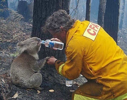 The lady telling us the details of all of the wines was a wonderful character and full of great humour. I clicked part way through that Lord Vesty is one of the other syndicate members in a couple of the horses that Dad has had an interest in over recent years. His daughter as well, of course I was at junior school with – Flora, but hardly remember her to be honest. Small world and all that! She reminded us of all the horrendous bush fires of 2009 and showed us where the fires came up to on their property, many of the vineyards in the surrounding area were badly damaged but thankfully the wind changed JUST as the fires had come up to the edge of the property the winds changed and blew it in a totally different direction. It was not far from here that the picture of the fireman giving the koala some water was taken.