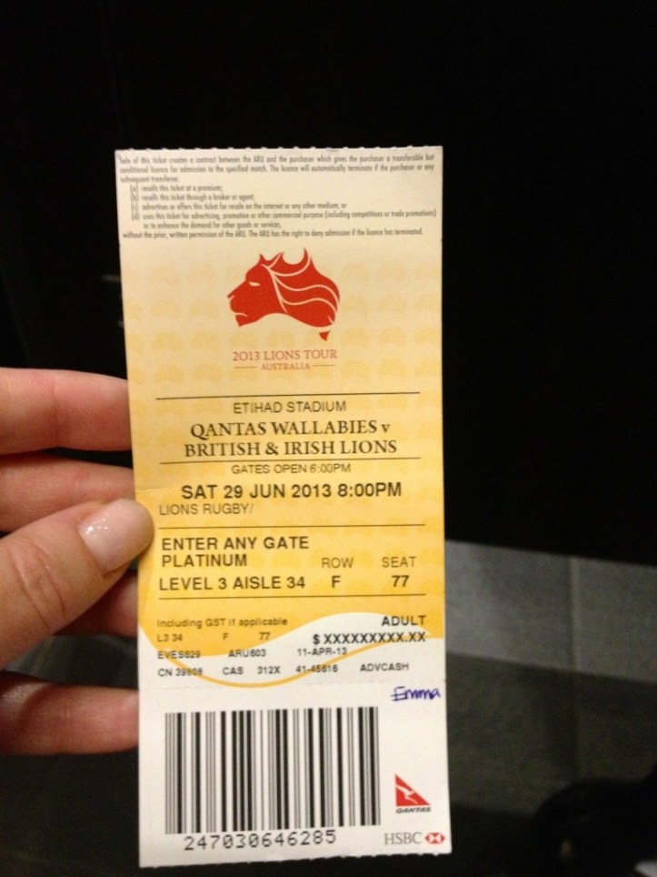Now most of you already know I don’t do running as a rule. But if it was a case of getting a ticket for the final test or not, running it was going to have to be! So I ran, and I mean RAN (like running for my life ran), across town to make sure that I got there before anyone else got the tickets and the place closed for the rest of the weekend. I was possibly the actual colour of the Lions shirt by the time that I reached the shop and dripping with sweat & gasping for breath. On further looking it transpired that the two single platinum tickets that they had were not only one behind the other but they were also both on the aisle. Could not be more perfect if we had tried. Done. Bought. I confessed my undying love to the elderly gentleman behind the counter who did look somewhat bemused with my admittance. Tickets in hand I gently strolled back to the hotel, taking in some very big breaths to try and recover from the over exertion of the trip to buy the tickets! Happy to have the tickets not only in my pocket but also confirmed for the final test. Once back at the hotel I had to have a lie down to try and recover and get my heart rate back down to something resembling a normal rate!