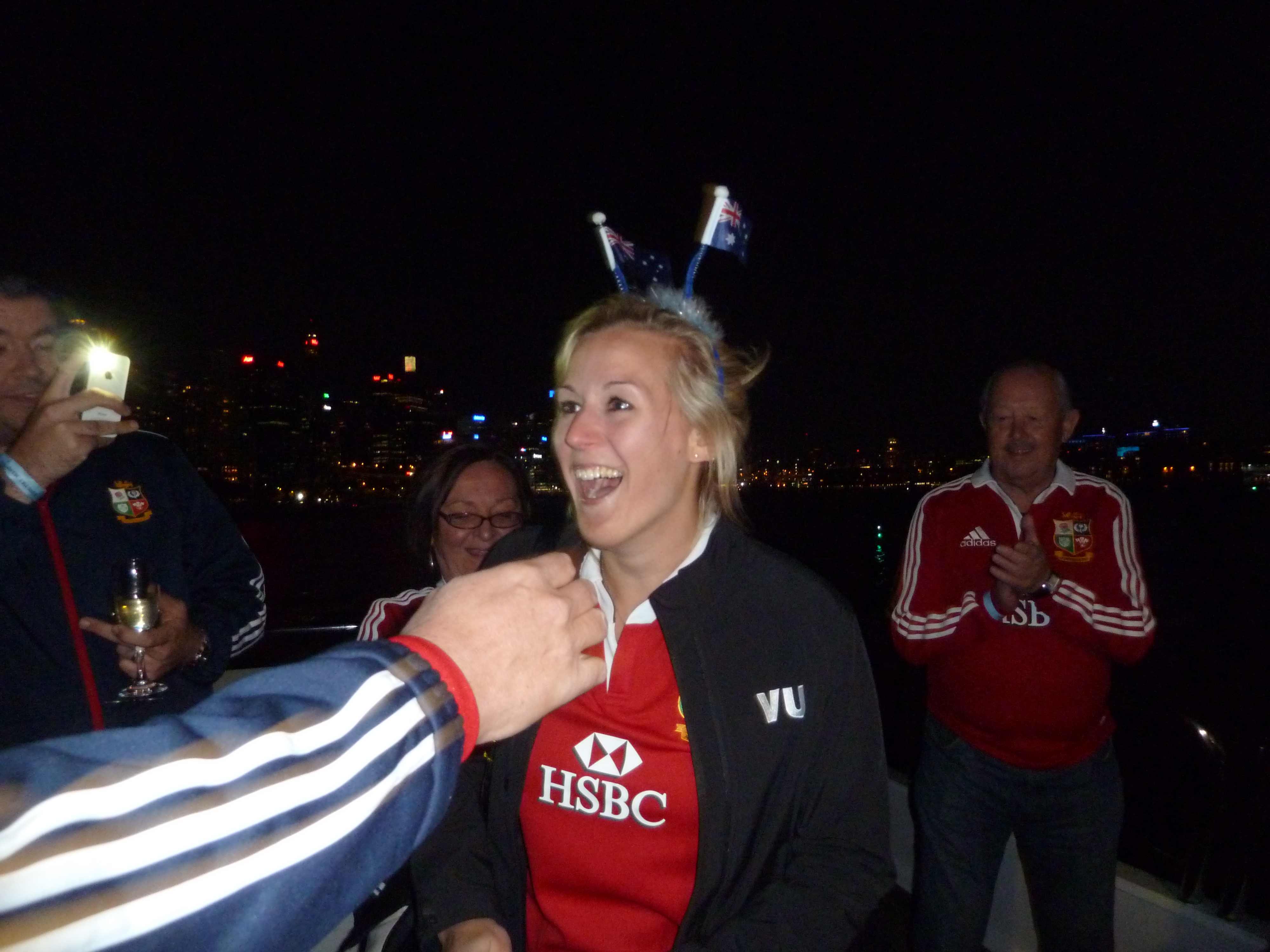 Headed down to Darling Harbour with Sophie’s folks & met her there as we did our usual pre-match ritual of a plate of pasta before heading to meet any of the others, this time for Kangaroo Court in the bar close to where we were boarding the boat. Sadly only part of the group was on time and as we had to help out with wrist banding everyone before they boarded the boat we missed out on it and the court was disintegrated pretty much. Tho I did later see one of the group with his shirt on back to front – I guess not everyone got away without any punishment then!! (Perhaps I should have found some proper rules and set them up prior to ‘court’ such as the ones here)