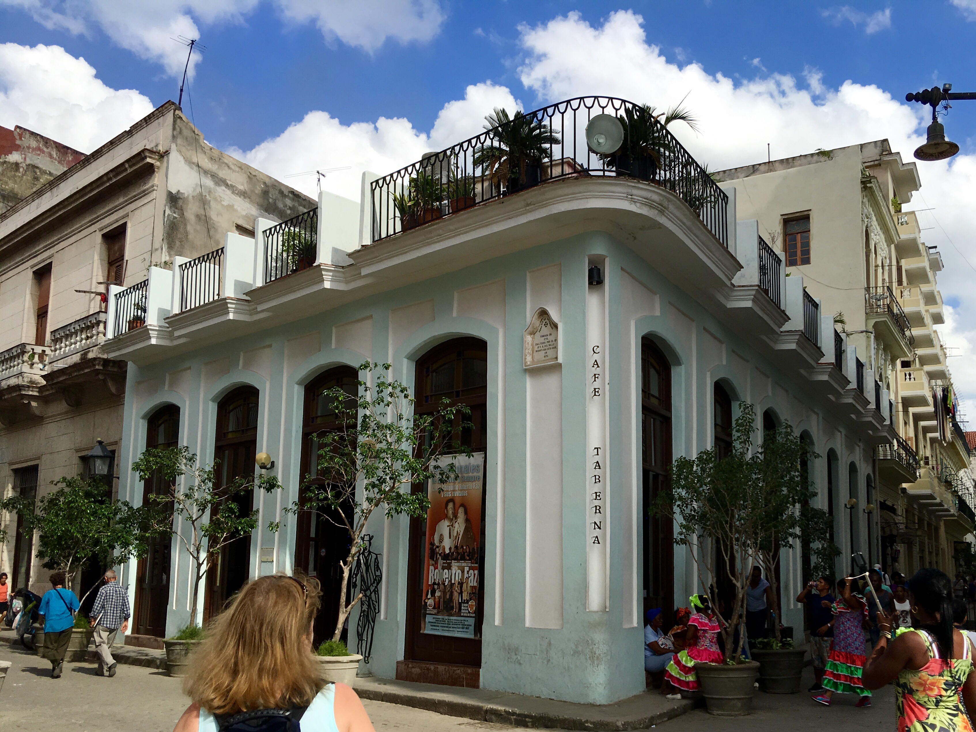 The Plaza Vieja is the most redeveloped spots in Habana Vieja having been repaved and the majority of the facades of the buildings returned to their original state. A large fountain at the centre of the square was bizarrely surrounded by fencing but I couldn’t quite work out why. It was clear why this square was seen as the focus for the local community, ideal for a market day or festival and is now a centre for urban activity. Just off this square is the Cafe Taberna where we would be returning a little later in the day for our salsa class and quick cocktail making lesson.