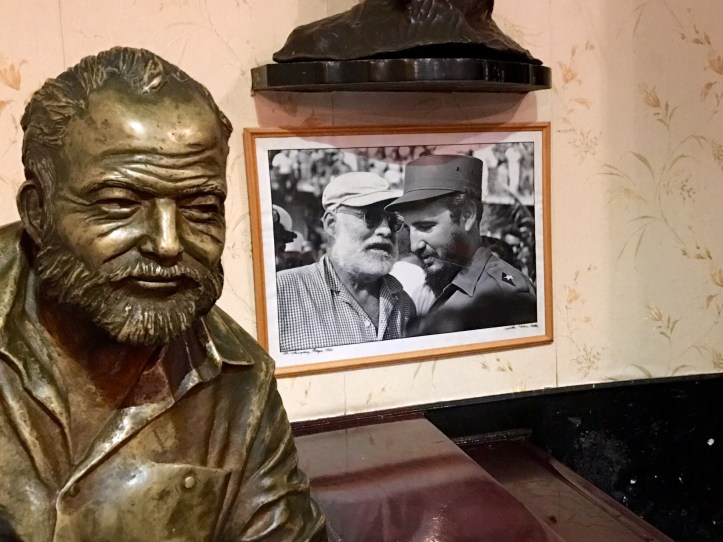 After dinner drinks were just around the corner from the hotel at El Floridita which was one of Hemmingway’s regular haunts in his hay day. It was here that he supposedly drank his daquiries and chatted on the corner of the bar. There is a statue of him there now and several black and white photos of him with famous people. Him with Fidel being closest to the statue. There was the bar itself and then the seating area was all sort of in pairs with tables all seats facing the bar. All heavy iron, what I’d imagine back in the UK put out out on the decking not really in a bar. It looked like they served food as well, not that we needed anymore after our meal out. We all supped our frozen daquiries and I hit my brick wall of tiredness and headed back to the hotel with one of the others. We left them all there with rumours of some planning to go dancing and more drinking. Normally you don’t really need to ask me twice if I want another drink but my usual response of ‘oh go on then’ was just not going to happen this evening. Bed called. Hopeful that I wouldn’t get stuck in the lift like one of the other ladies did this morning (lift was funnily enough still out of service and never came back into service even by the time we left?!), that none of my stuff had been knicked and that my room hadn’t turned into a hothouse for mozzies! (Thankfully no to all of the above!)