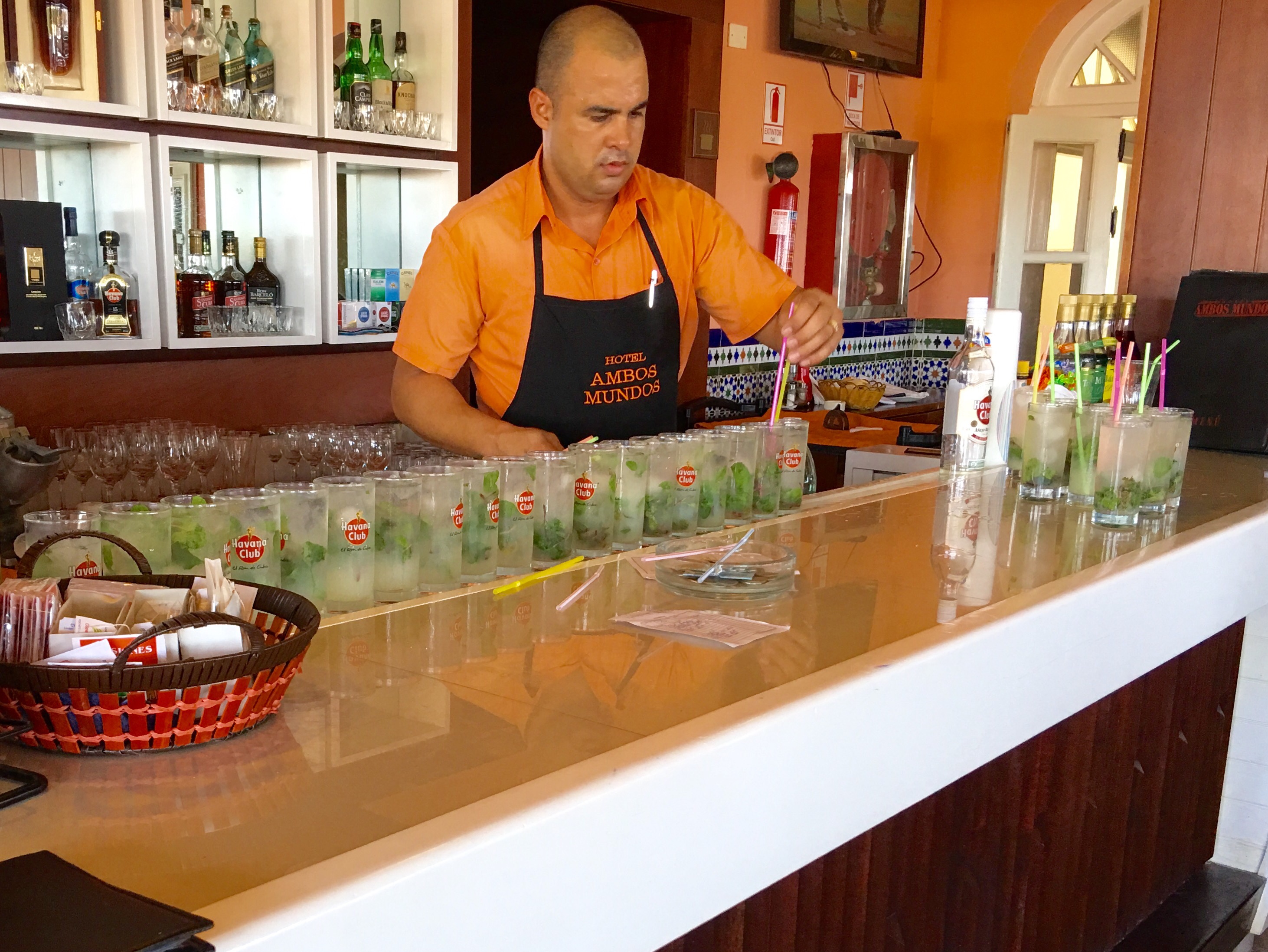 We headed early to the Salsa dancing location, Cafe Taberna, looking for a drink before the class, only to find that several others had a similar idea. We were the only ones in the bar really and the class went quickly as the band was ready to leave. Dressed all in white, many with dark glasses on they looked like a typical band from Cuba. All elderly gentlemen too it must be said. Honestly, dancing is just not my thing. I can do a very good funky chicken but that’s about it. Salsa dancing was really something that I was suddenly going to find an unbridled passion for. I hid out of sight as much as possible (from the instructor) to avoid being picked on. Over tired and over heating I could sense a sense of humour failure was rapidly approaching. Three forward steps, three back three to the side and then the other and foot behind. Oh this is easy was being muttered, oh god we have an audience – but they are just watching my arse as well. As hard as I tried to concentrate on my footwork, this was going to be an unmitigated disaster. The others went left I went right they went forward I was going left. Never have I been more grateful for a class to end (well bar the one with the Ofsted inspector watching & my class just misbehaving at EVERY turn – but I digress). Then came the bit of the prebooked activity that was more up my street – the cocktail making class. This was more of a watch me make 15 mojitos type of affair if I’m honest. I’m not arguing – I mean we drank them. There seemed to be a hell of a lot of rum going in them all it must be said. Apparently you count to ten when pouring it??!!!! It must be watered down for tourists or something as despite it tasting strong, it had little effect on me? We had a few more and a few were made by members of the group – mainly as a photo opportunity more than anything.