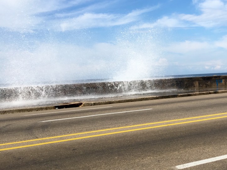 Several if the others were partaking in the atmosphere on the terrace of Hotel Inglaterra as we said goodbye to a few that were not leaving on the main flight majority of us were booked on. I coordinated to head out in the open top car ride in one if the awesome retro cars (originals mind). Ivor chose a fantastic bright pink one and off we went on a tour of Havana. I had my bearings ok for most of it as our guide wasn’t brilliant at being, well a guide! The trip down the Malecon with the huge waves crashing over the wall were amazing – managed to miss them all when trying to film them in my phone – mighty irritating!