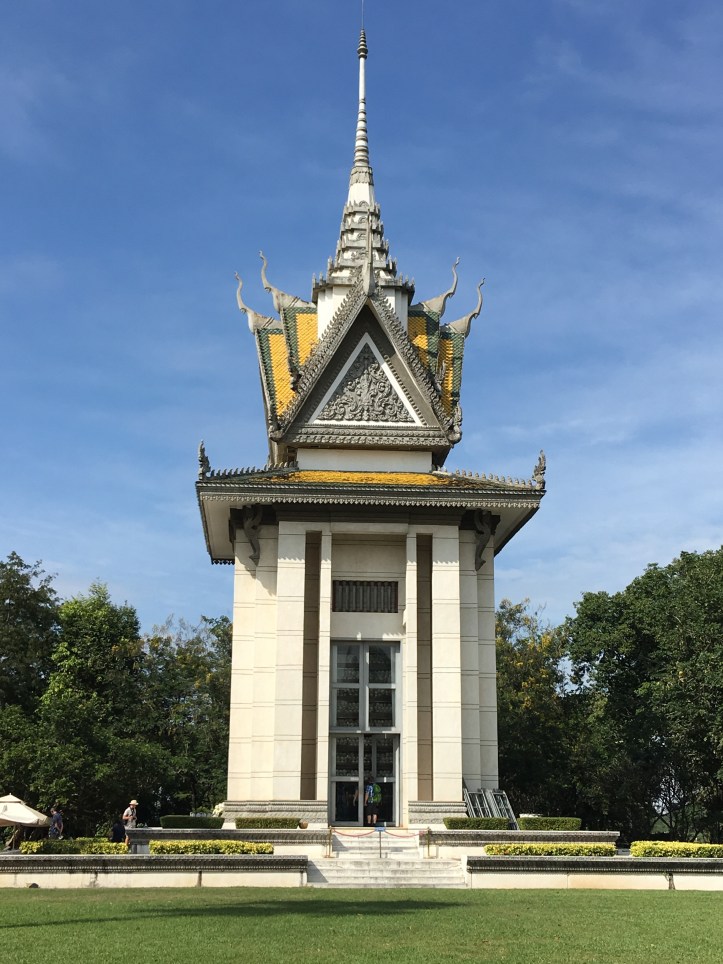 There were several mass graves here (only 43 of the 129 communal graves have been uncovered) and areas which had significance such as the tree where the loud speaker hung that played the music whilst the killing took place. The other one that was really really quite hard to take in was the tree against which the youngest children were battered. Sorry to paint such a bleak picture but LITERALLY whacked against after being held by their feet so that their skulls were crushed. Then casually tossed into the mass grave next to it. Bodies would be gayly tossed into the air and caught on spears – as if for fun. It was worryingly easy to envisage and therefore simple horrendous to think of. What totally got me was the information on the age of these Khmer soldiers. I’d imagined them to be twenties upwards ish but 20s being the youngest. Not a bit of it – those that did this to these innocent people were anything from 12-17. That’s ONE YEAR older than primary school. On what level did they believe that they were doing the right thing??!!!! They had to have been brainwashed. I kind of lost focus on the info from the guide trying to absorb all the information and more to the point process it. I have some fairly harsh reading to do on my return to fill in the gaps.