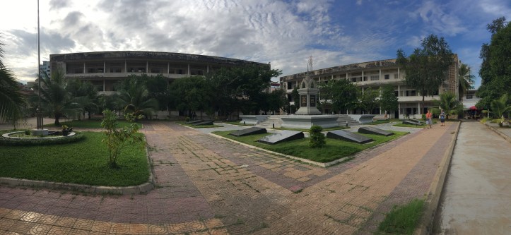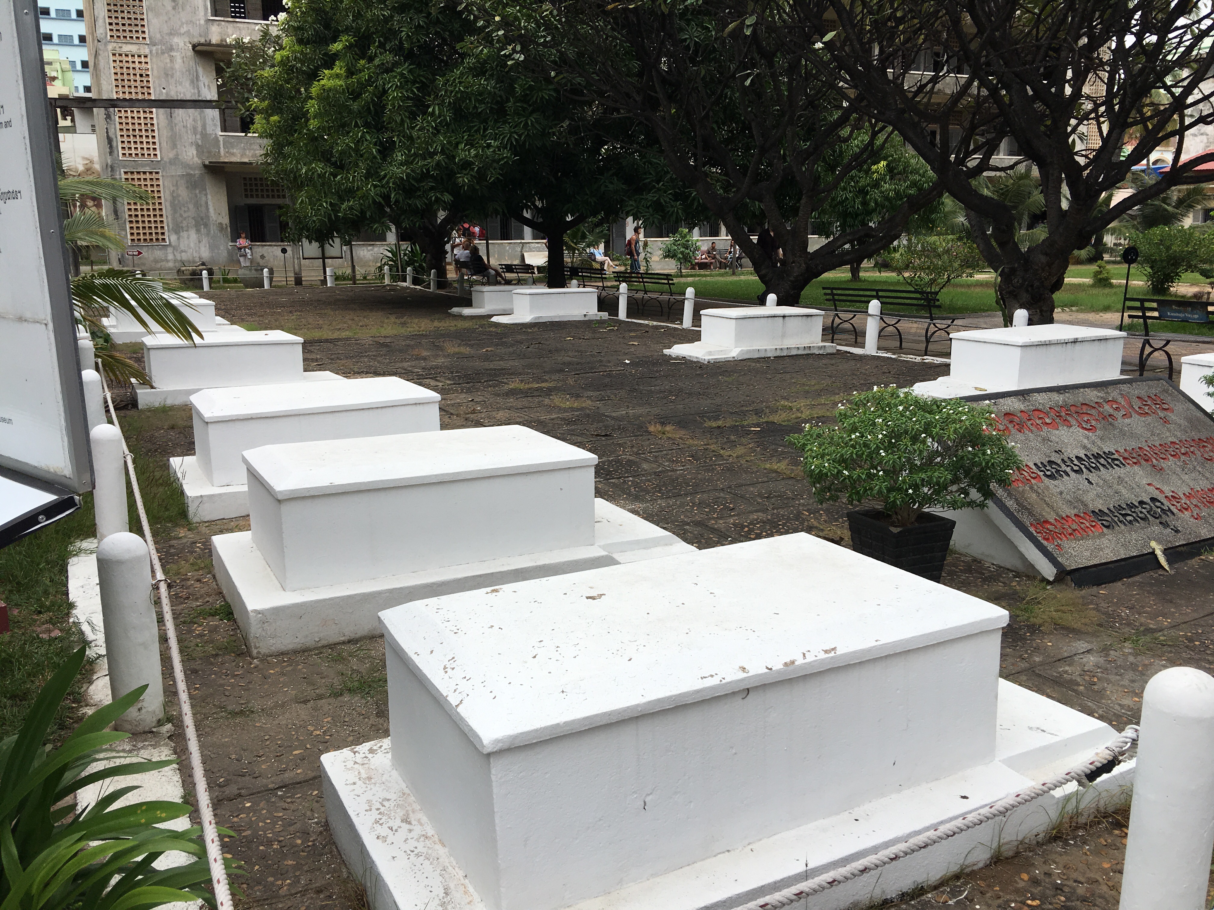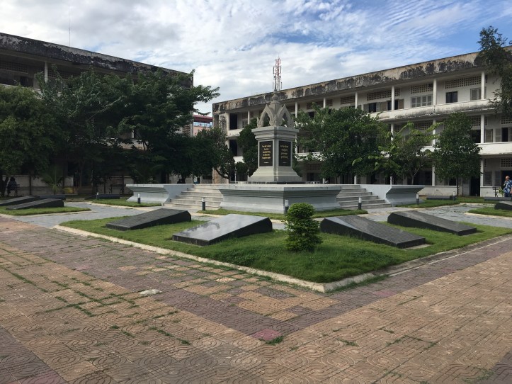 Further beyond the two survivor was another playground area if the former school where you could just envisage the children kicking a ball around. Only in the last year or so has a memorial been built here with plaques with all of the prisoners names on, the photographs and information of whom is in existence from that time. I just stood quietly and strolled round the area. I popped into one of the buildings to see the size of the individual cells but didn’t brave it to the other higher floors where the rooms of victims were larger and more in them. The bodies of the 14 that were in the torture cells at the time of the Vietnamise invasion in 1979 lie in white coffins in the first courtyard are just outside the cells in which they were found. Quite a depressing visit to end the year on but none the less eye opening and fascinating. Looking at the population of Cambodia today there is a very small percentage of elderly and you only really see those younger than me as anyone older was simply wiped out.