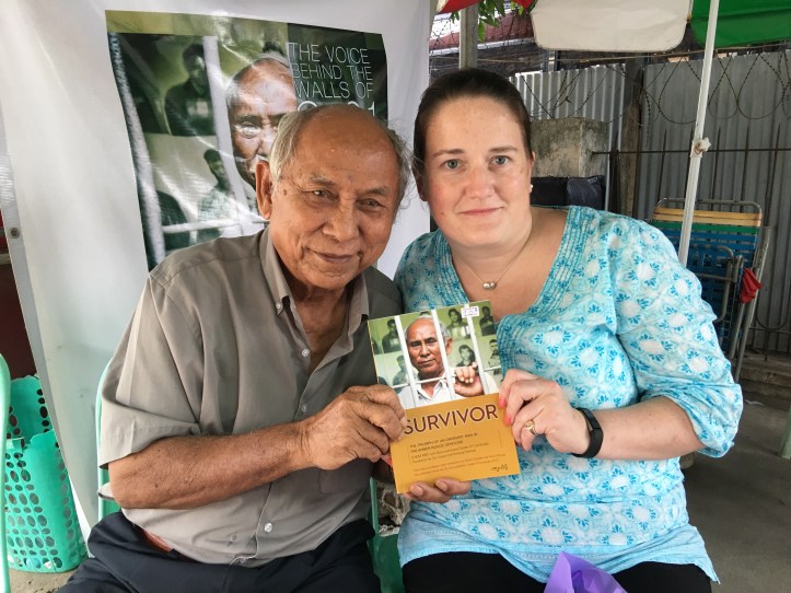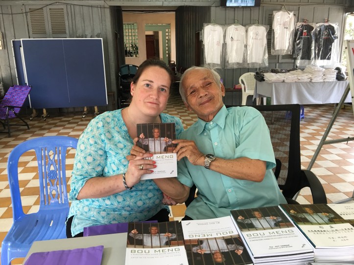 I, for one, couldn’t do much more of the gruesome images, the constant reminders of the past with the descriptions of the types of torture that was undertaken and the ‘rules’ at the prison. Thankfully we were coming to the end of the tour with our guide and offered free time for a further 20 mins or more to take in the remainder of the site. This was just before meeting two of the prison survivors for that time. I did the tourist thing I’m afraid and had my photo taken with & paid for both of their books of their ecprriejce, memories and indeed life since. I’ve already read a few pages of the first gentleman’s (Bou Meng) who managed to survive as he was a painter and painted portraits of Pol Pot as his means of escaping being re-educated. What the hell do you do when meeting these people? I greeted him with the typical gesture of palms together fingers pointing up and quite high on my chest as a mark of respect. I apologised for what he suffered through, bloody stupid thing to say in reality but my heart was in my throat. I had tears welling up in my eyes as we hugged, squeezy BIG hug and he kissed me on the cheek & said thank you, thank you. A mere flash in the pan but it just seemed to kick me into touch. There was a second survivor Chum Mey (there were 7 originally) with his book there and I too purchased that. I have some fairly hideous films to watch on my return.