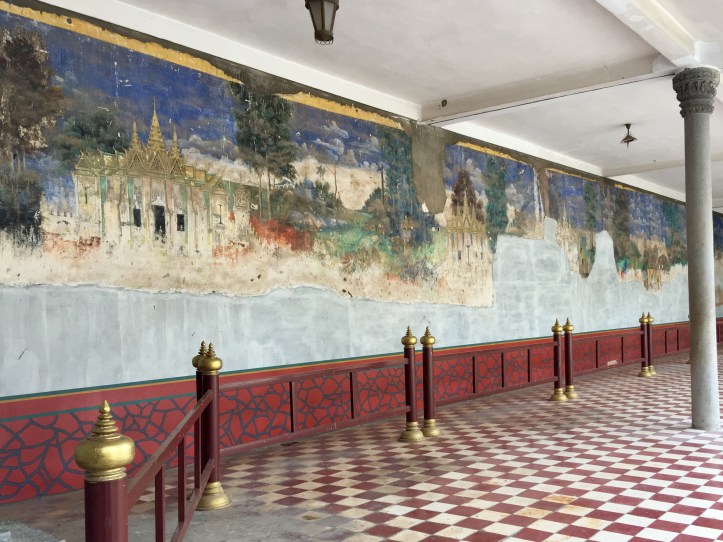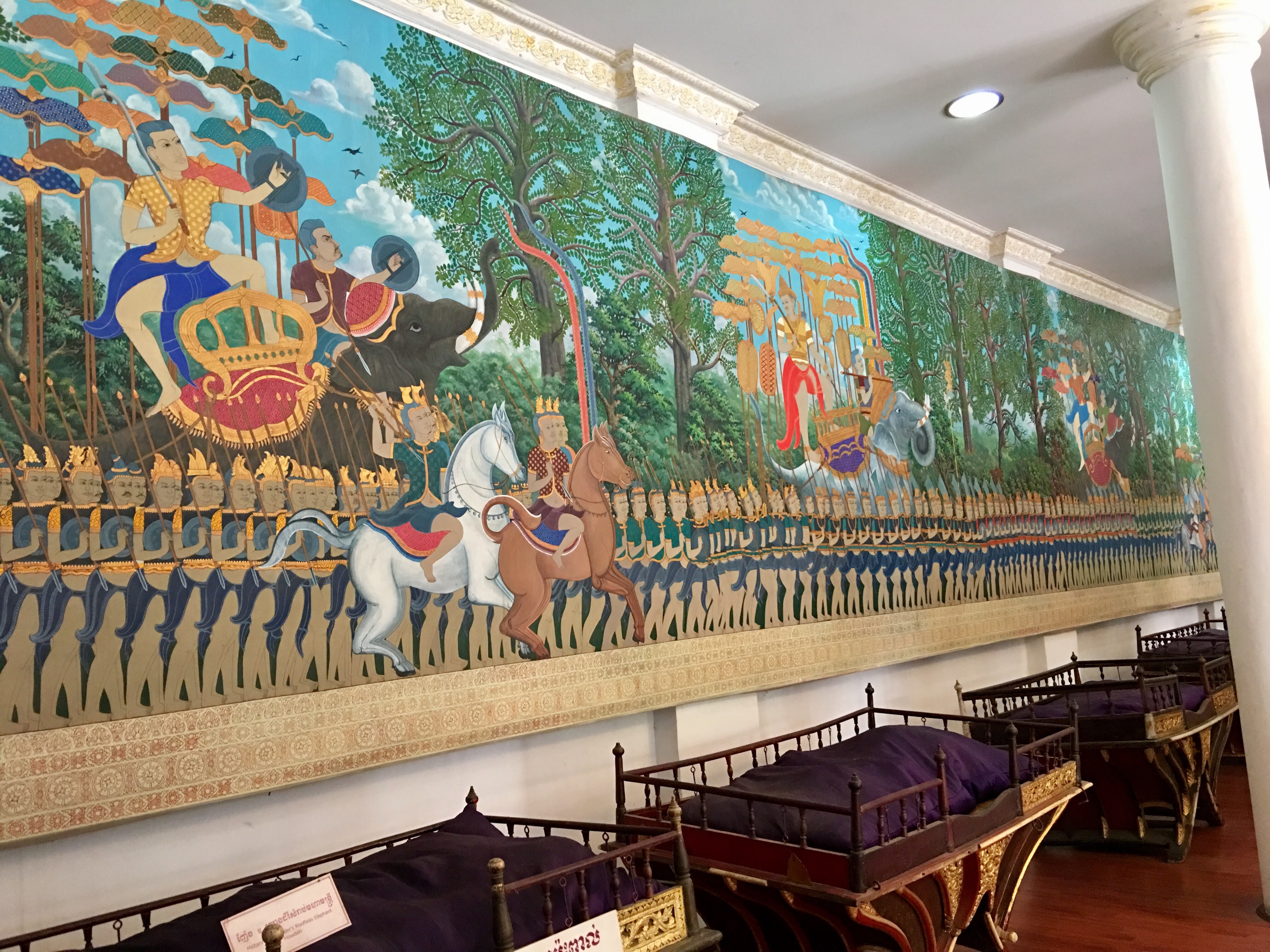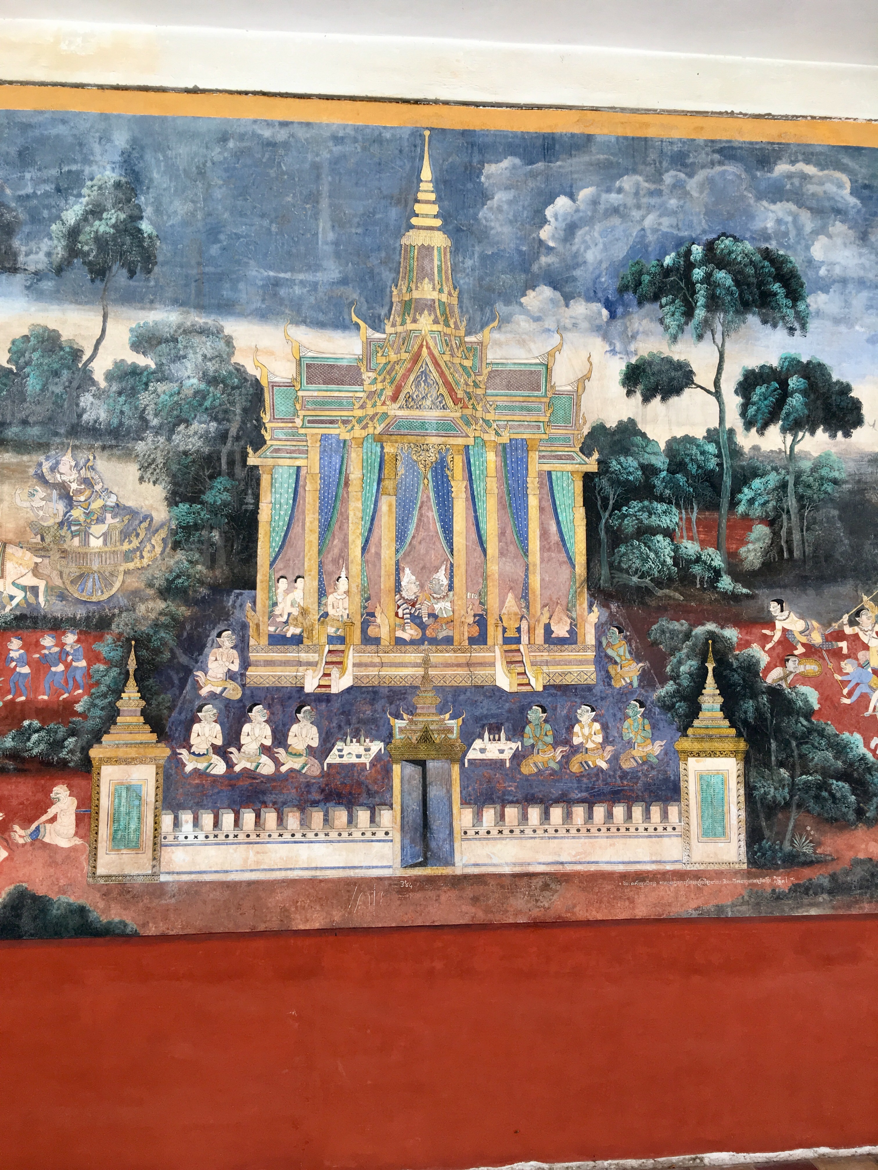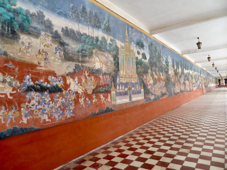 The Silver Pagoda complex itself is surrounded by a mural depicting the classic Indian epic of Reamker (as it’s known in Cambodia). Created in around 1900 there are many parts of it that were destroyed or defaced during the Khmer Rouge regime. There are also several stupas within the complex which are shrines, ashes of the deceased are kept inside them one housing the previous King in a stupa dedicated to his 4 year old daughter.