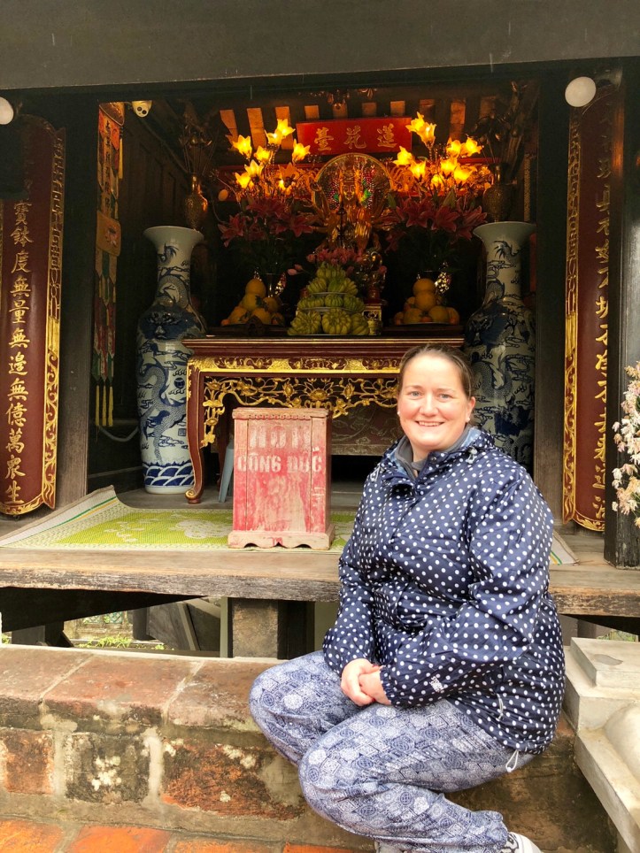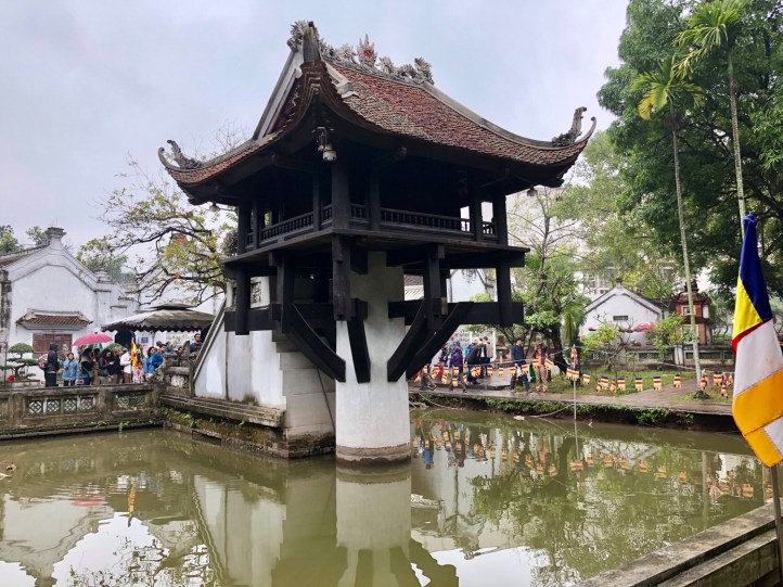 The last stop in the complex was the One Pillar Pagoda built to express the gratitude of Emperor Ly Thai Tong to his wife who had produced a son and heir for him. It’s built of wood and on a single stone pillar (unsurprisingly) and designed to resemble a lotus blossom – the symbol of purity rising out of a sea of sorrow as it is surrounded by a small pool. Sadly it’s not the original as the French destroyed it before they left Hanoi in 1954. Now there is a Buddhist shrine at the top adorned with offerings.