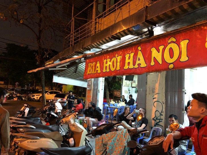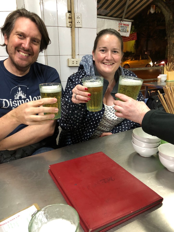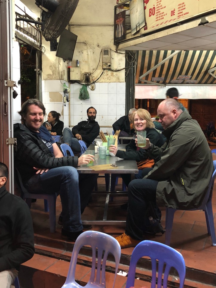 The other experience I wanted to try was the fresh beer. It took a while to try finding it but we got there in the end with help from a very helpful man who could see we were a little lost aimless looking around and trying to work out where the f*** we were from the guide book to the street signs. We weren’t that far off. Bia Hoi is Vietnam’s own fraught beer or microbrew which is similar to a light bodied pilsner and was first introduced to the country by the Czech’s. It’s brewed without preservatives and is meant to be enjoyed immediately. We went to the local Bia Hoi junction and found a few establishments with small plastic chairs to sit on similar to those seen in a Reception classroom. It was served in recycled glasses which made it look almost green in colour initially. It wasn’t that bad but the others were adamant that it would give them dodgy tummies – none of us wanted this so we only partook in the one to say that we had done it!