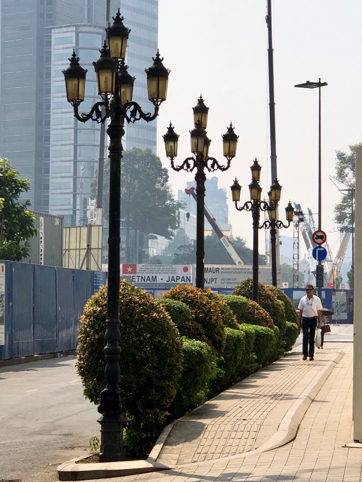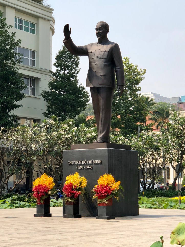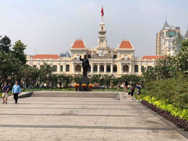 We walked past the People’s Committee Building which we, as tourists, were unable to enter. Its style was French colonial of course looking similar to a sort of Hotel de Ville as you would see in France. At one end of it is a huge statue of Uncle Ho and the other a ole Thor’s of construction where the proposed central city station will be for the new Metro station that is slowly being built/created in the city.