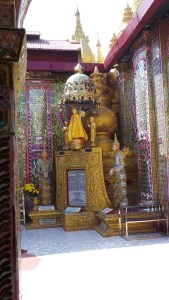 From here we fled up Mandalay Hill (not in the itinerary for those following that!) in two mini buses/taxis as we were NOT keen on he 45 min walk up here and would take up,WAY too much time for this additional item the itinerary. It was hilarious , open backed sort of well, what I would call backies in South Africa but I’m not quite sure how to explain them! In ours on the route up we picked up a Nun who was heading to lessons part way up the hill who we dropped off too and was immensely grateful for the lift. The views from the top were spectacular it has to be said and interesting to see the layout of the Royal Palace and grounds edged by the palace walls so clearly from up here. The Wish-Granting Temple at the top had a host of glittering and bright mosaics and I spied someone working to mend some as well, such a delicate process.