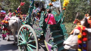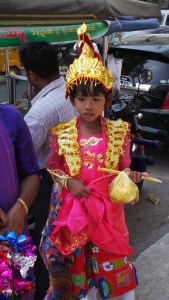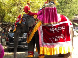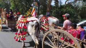 We had totally lucked out with this off piste visit as on the way back to the minibus we came across a wonderful bright procession with cows pulling chariots with pretty small children all dressed up to the nines. Zar Zar had explained to us that this was a really wonderful thing to run into as it was a novication ceremony which the really small boys partake in as they enter into the Buddhist faith. There was even an elephant adorned in ceremonial robes which was amazing to see. We were all really grateful to have run into something that was part of everyday life and not put on for the tourists, something that was so different to our own culture.