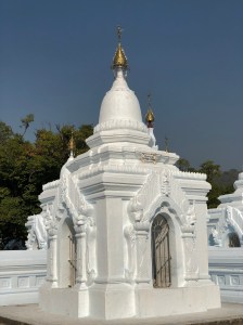 Our final stop before heading back on the boat to Mandalay was the Hsinbyume Pagoda which Zar Zar also referred to as the wedding cake, you can see why from the photos below! It’s wavy design is thought to represent Mount Sumeru which is the mountain at the centre of the Buddhist cosmos with the seas surrounding it and represented but the central stupa and the seven terraces on which it was placed. The views from the top, yes even I climbed it in the heat, were wonderful, looking out to the river and also over to the Mingun Pagoda and the countryside surrounding.